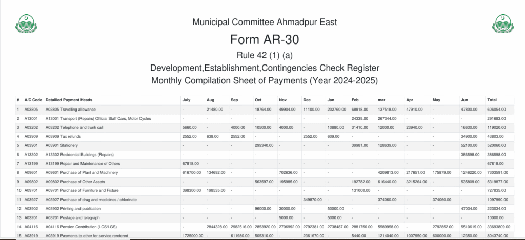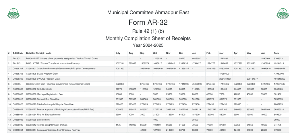Monthly Receipts 2024-25 Details